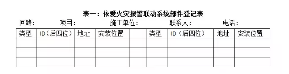 有編碼器時,在安裝部件時,先對部件進行地址編號,然后填寫在部件登記表中如表一。(同時把部件ID號的后四位記錄在表一的對應位置,這樣做的好處是:通過主機可以調整部件編號,不必再到現場去編號)