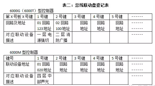 4.如果有多塊總線聯動盤,也如上填寫,寫明第幾塊,需通過聯動鍵盤聯動控制的全部寫全,見表二。