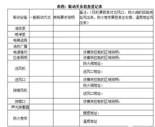 聯動關系簡要說明表,如有特殊要求寫明,請在備注內把要求內容填全。要把所有聯動控制設備一一羅列出來。