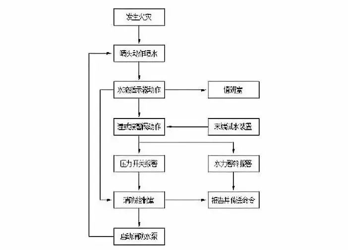 二、當發生火災時,灑水噴頭的感溫元件會自動脫落,并開始向保護區灑水,由于系統內的水由原來的相對靜止狀態,變為流動狀態,水流指示器感應并送出信號。接著濕式報警閥開啟閥片,壓力開關感應送出信號,水力警鈴跟著報警,根據水流指示器和壓力開關的信號,控制器啟動消防水泵,向管網回壓供水,達到持續自動噴水滅火的作用。